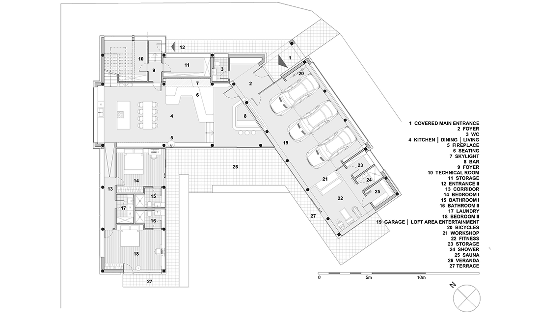 The brief had us abide to modern living standards, provide flexible space for art and entertainment, display a small car collection, be extremely cost effective in construction and maintenance but not at the expense of comfort and energy efficiency.