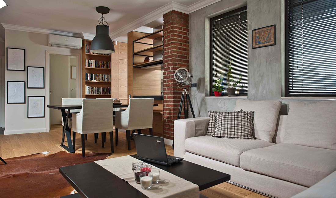 The small apartment is settled in a densely developed district on the outer perimeter of down-town Sofia, in a newly build residential tower typical for the capitals suburban landscape.